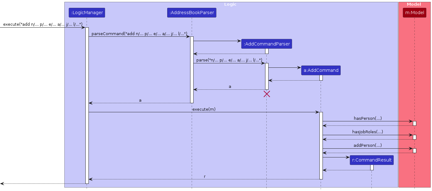 As an example, below is the sequence diagram for the Add Candidate command when the user inputs: