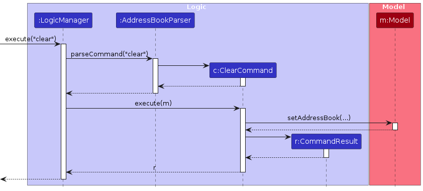 Result: ClearCommand returns a CommandResult indicating success, which LogicManager then propagates back to the UI.